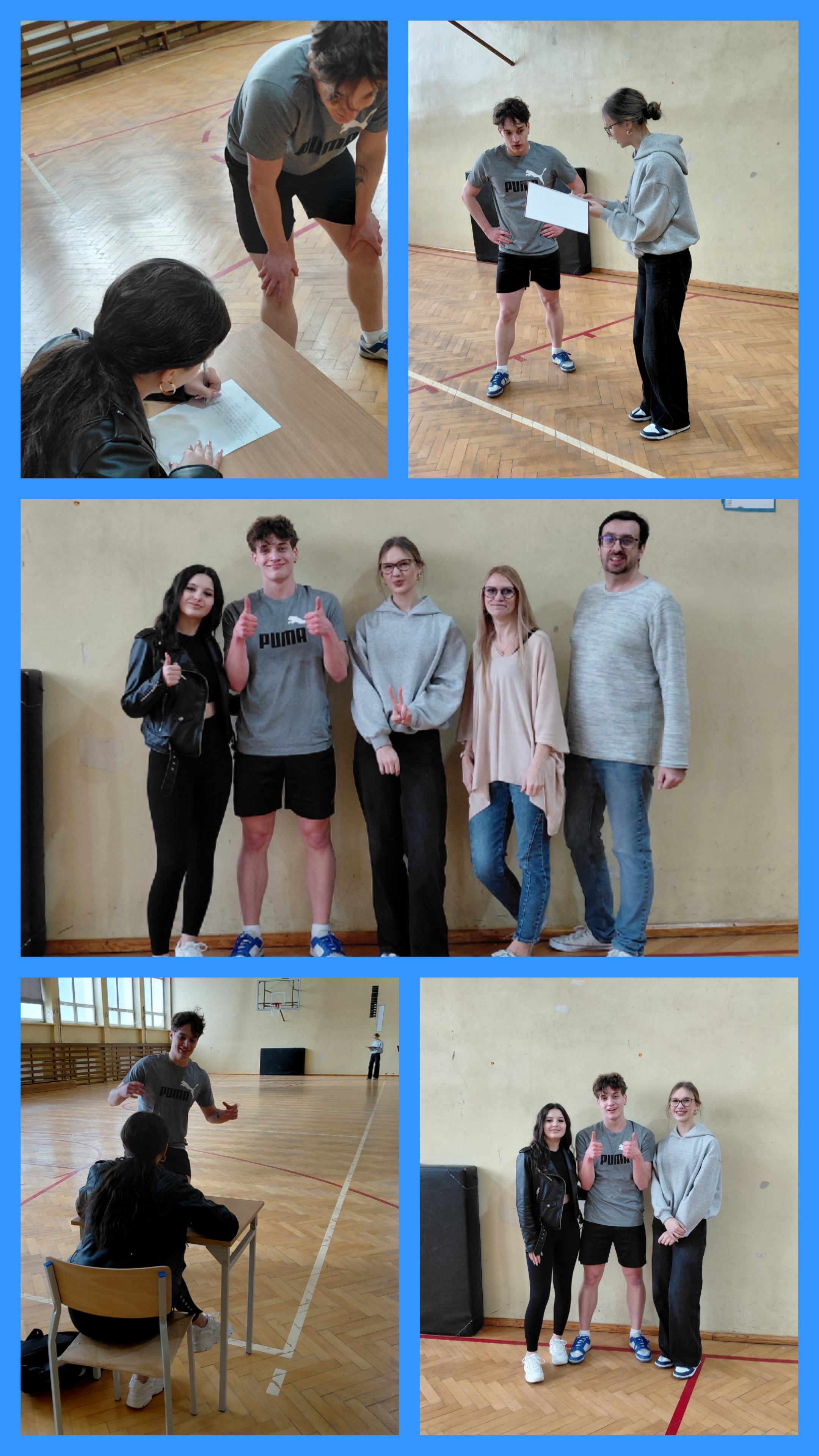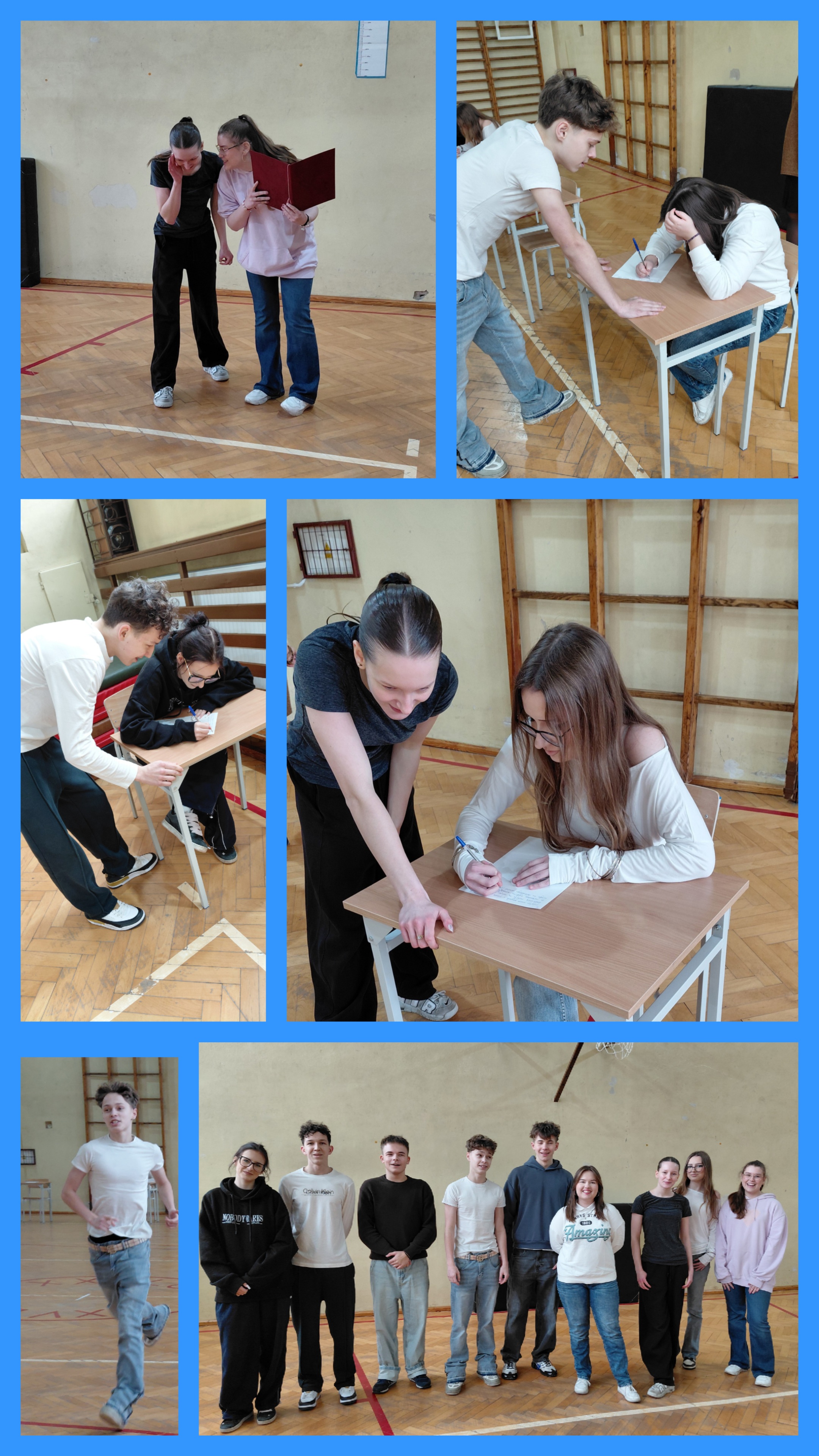 Z okazji Międzynarodowego Dnia Języka Ojczystego nauczyciele języka polskiego zorganizowali dla naszych uczniów „biegane dyktando”. Trzyosobowe zespoły klasowe zmierzyły się z niełatwym tekstem naszpikowanym wyrazami zawierającymi trudności ortograficzne. Było dużo śmiechu, zdrowej rywalizacji i oczywiście dbałości o piękną polszczyznę, a niektórzy przekonali się, że powiedzenie „kto nie ma w głowie, ten ma w nogach” jest wciąż aktualne. Gżegżółki i piegże z pewnością byłyby dumne z naszych uczniów!