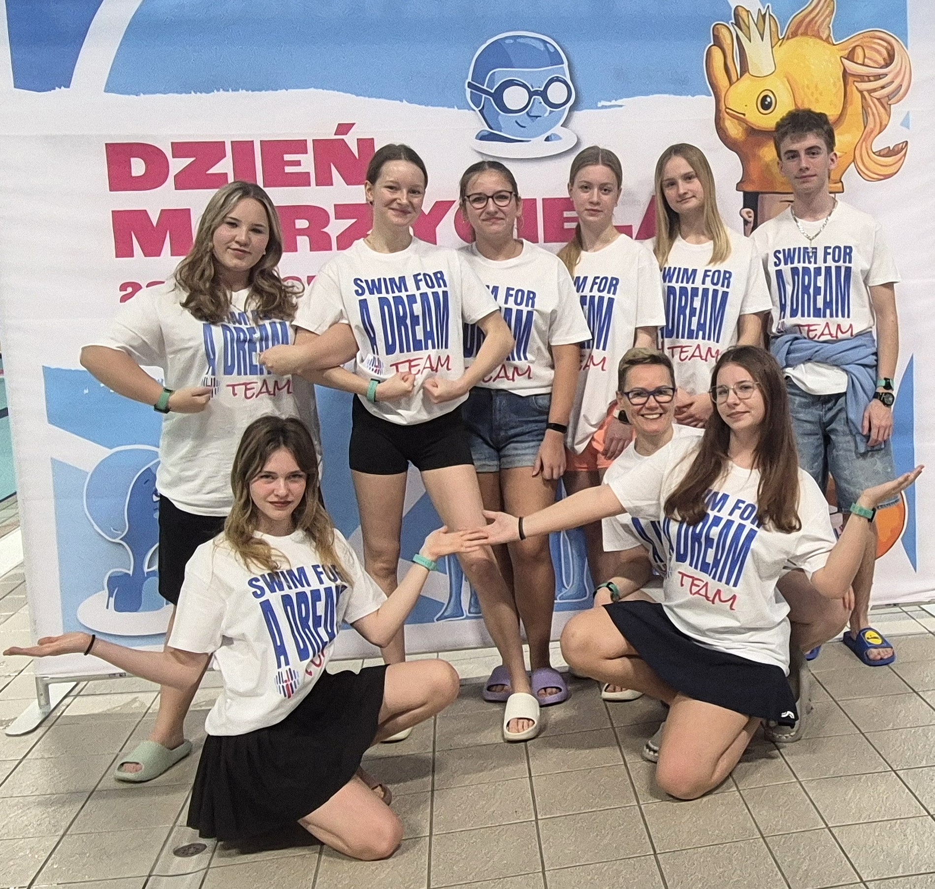 W dniach 22-23 listopada uczennice i uczniowie naszej szkoły - Daria, Natalia, Kaja, Kinga Wiktoria, Julia, Zuzanna i Tymoteusz – pod opieką pani Pauliny Chmiel byli wolontariuszami podczas charytatywnych zawodów Dzień Marzyciela w Zatoce Sportu. Ich pomoc pozwoliła przygotować i sprawnie przeprowadzić to pływackie wydarzenie.