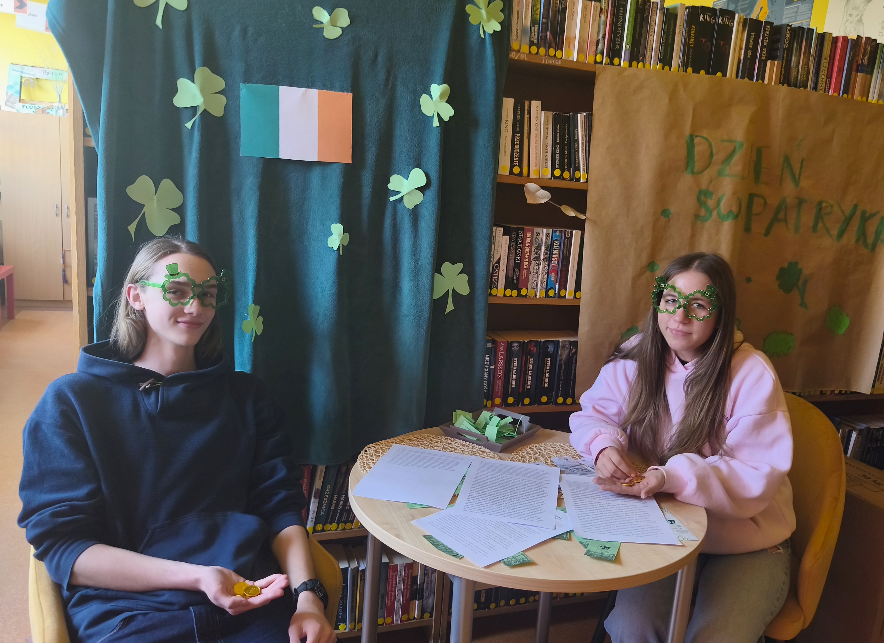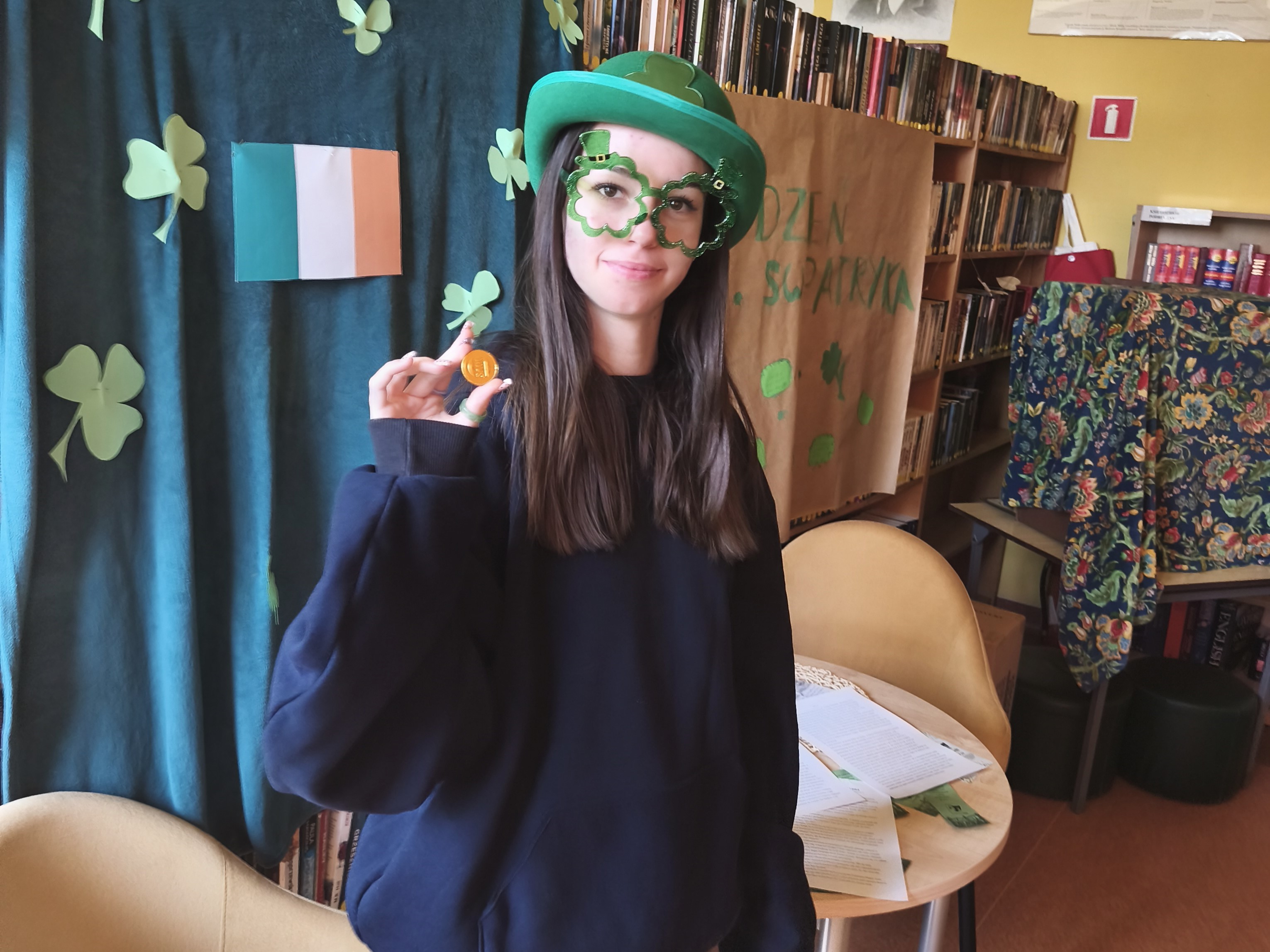 24 marca w szkolnej bibliotece odbyły się spóźnione obchody Dnia Świętego Patryka. Tego dnia uczniowie mogli przenieść się do zielonego świata Irlandii i poczuć się jak skrzat Leprechaun, szukając złotych monet.