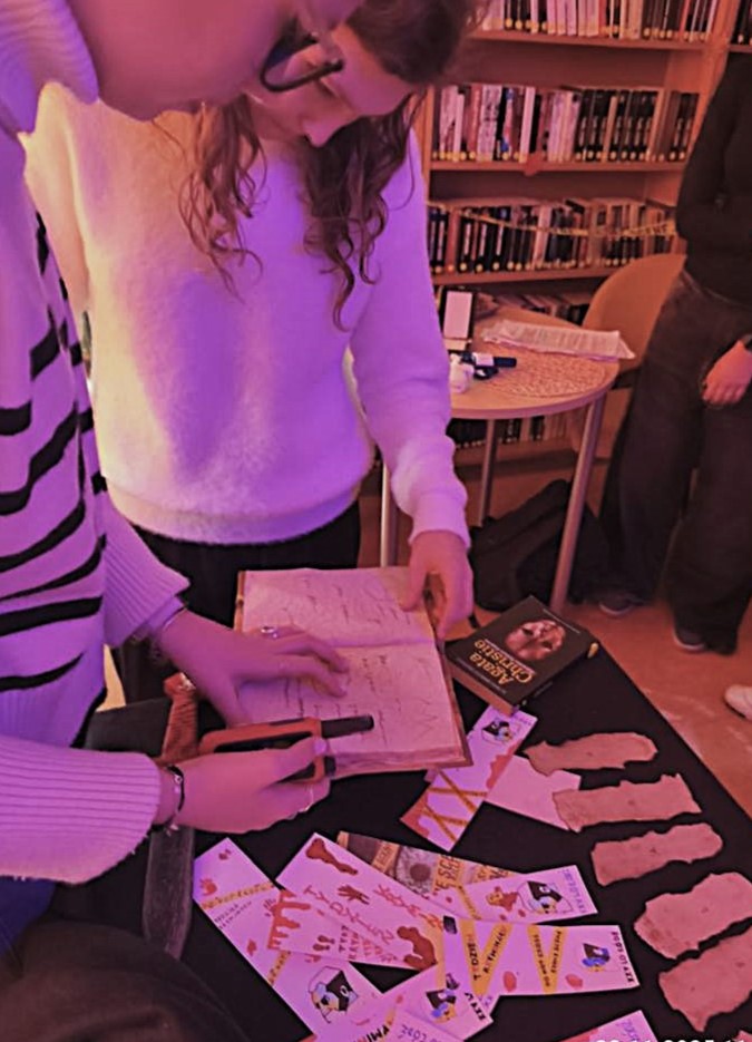 Tydzień Kryminału w naszej bibliotece zakończyliśmy bez ofiar. Punktem kulminacyjnym była gra kryminalna Escape room – „Zaginiony rękopis Agaty Christie". W gronie znalazców rękopisu znaleźli się:
