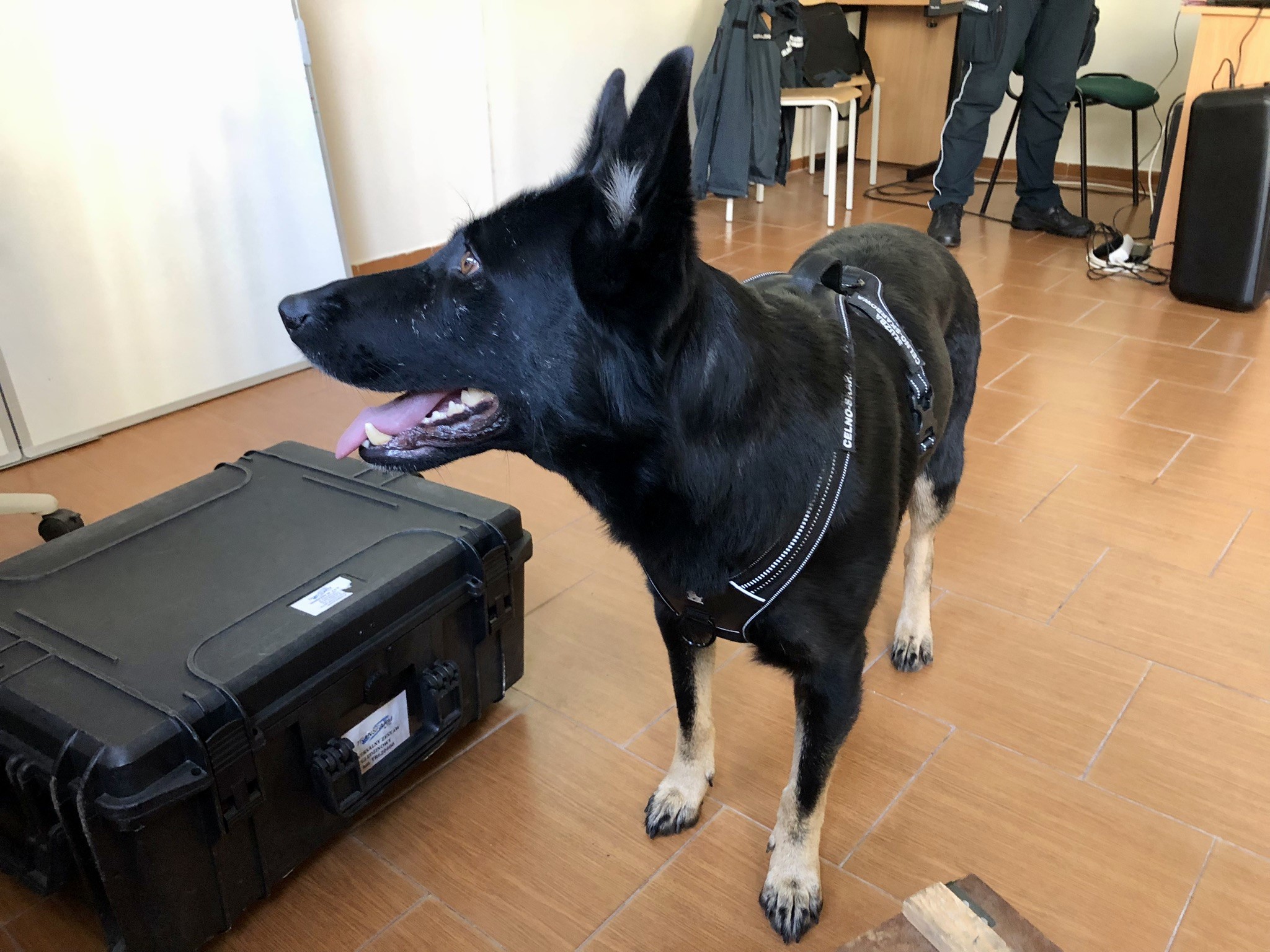 Funkcjonariuszom towarzyszył pies służbowy - Prada, który zaprezentował swoje niezwykłe umiejętności w wykrywaniu nielegalnych substancji.