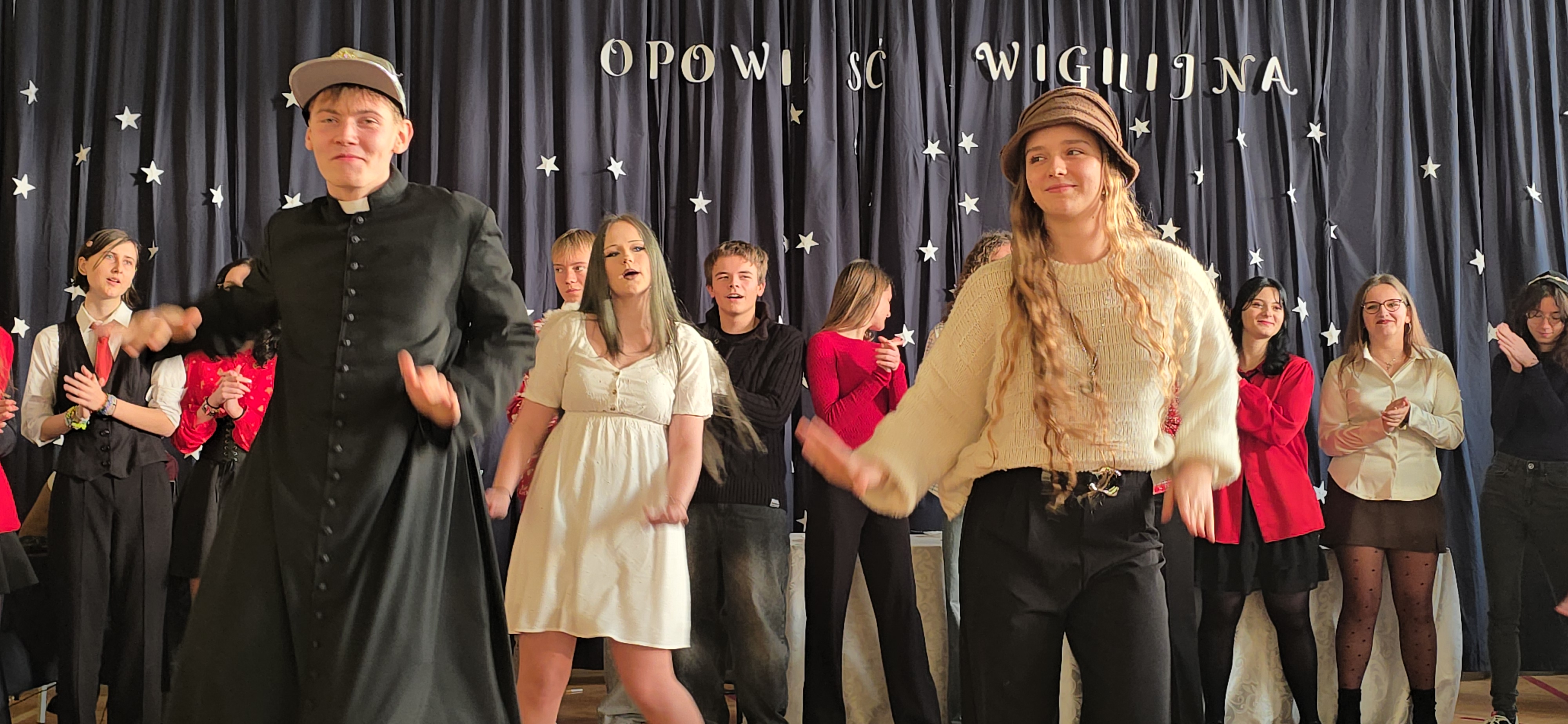 19 grudnia 2025 r. odbyła się w naszej szkole uroczystość wigilijna, która wprowadziła nas wszystkich w klimat Świąt Bożego Narodzenia. W jej przygotowaniu uczestniczyła młodzież z klas 1D, 2C, 3B, 3C i 3D, a nad całością czuwały panie Gabriela Rybarczyk – Jochym i Joanna Wiszniewska.